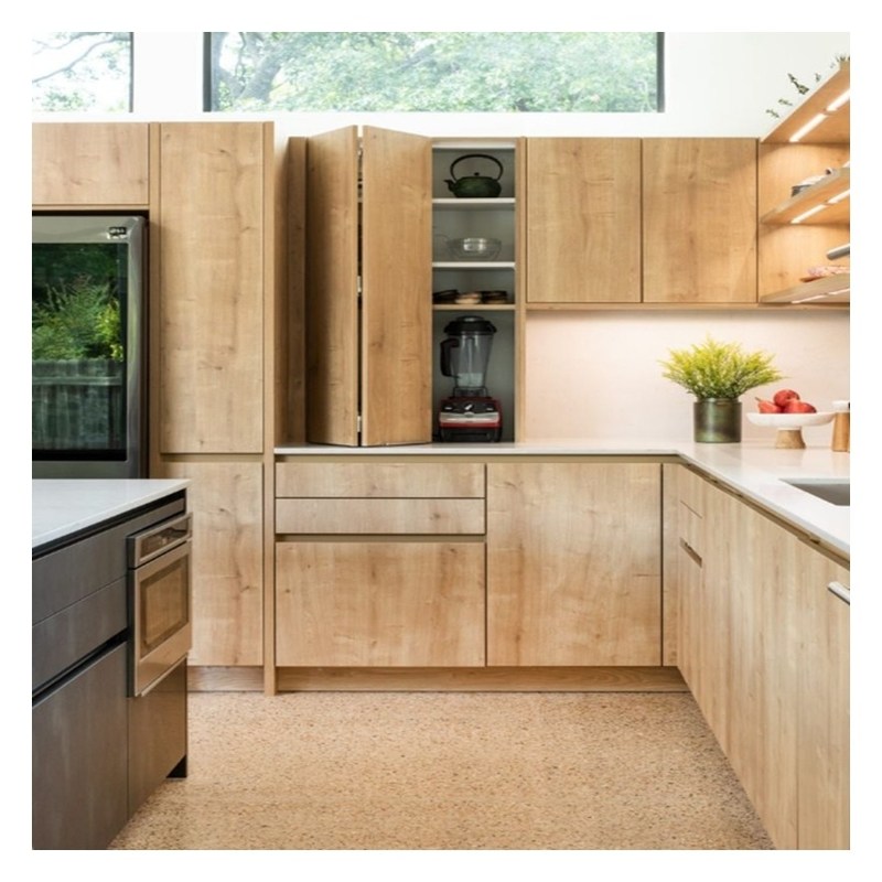 Keukenkastjes van massief hout in de minimalistische Europese stijl met plywoodcarcasemateriaal 11