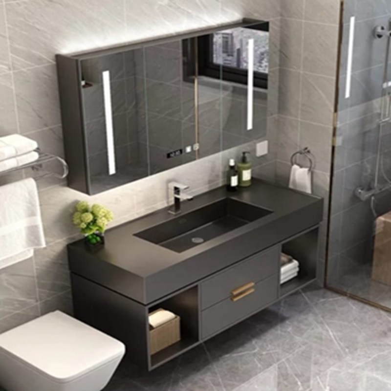 Europese massief hout lak badkamer vanity voor appartement op maat licht luxe look 24