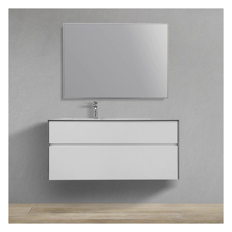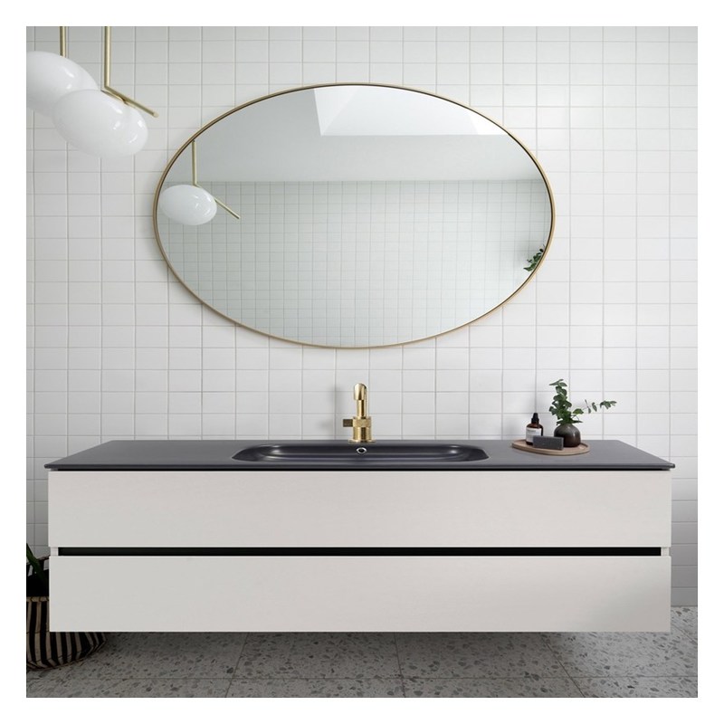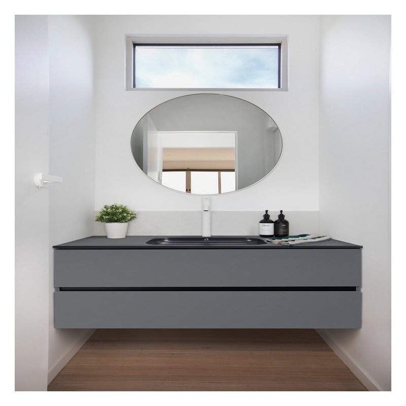 Minimalistische houten badkamerkas met matte laklaag en aanpasbaar ontwerp