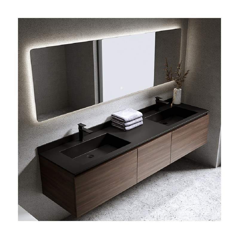 Houten dubbele gootsteen badkamer vanity met aangepaste breedte en rechthoek 7
