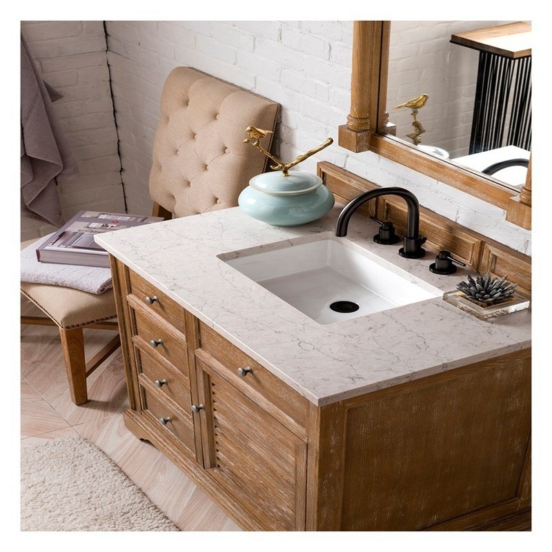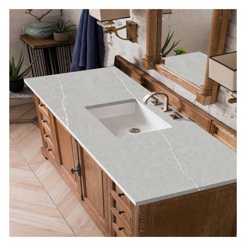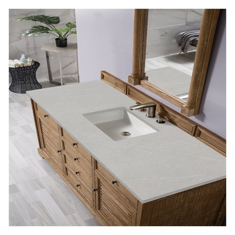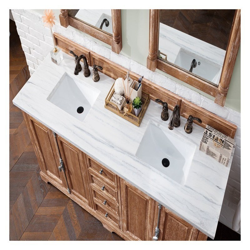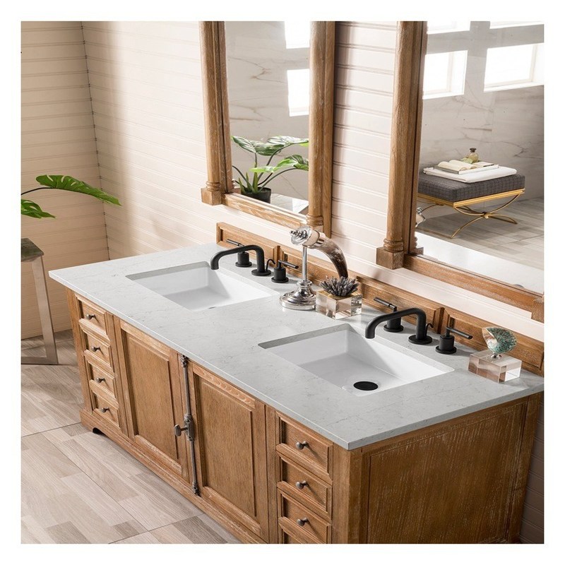 Luxe massief houten badkamer vanity met White Rock Slab aan tafel en kraan inbegrepen 25