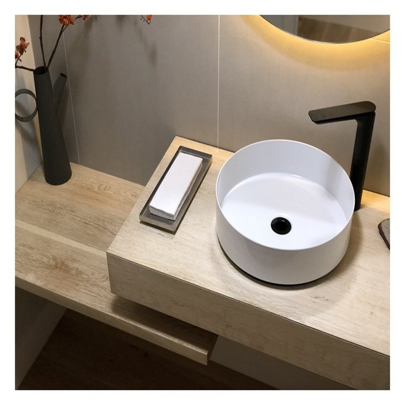 Modern stijl Melamine Board Counter Top Basin Badkamer Vanity met Handle-Free Design 7