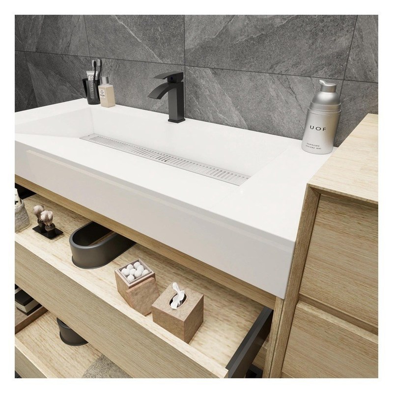 Modern stijl Melamine Board Counter Top Basin Badkamer Vanity met Handle-Free Design 8