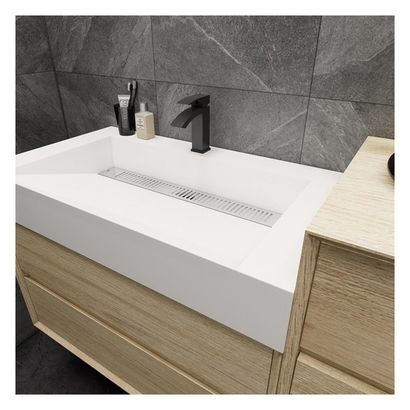 Modern stijl Melamine Board Counter Top Basin Badkamer Vanity met Handle-Free Design 16